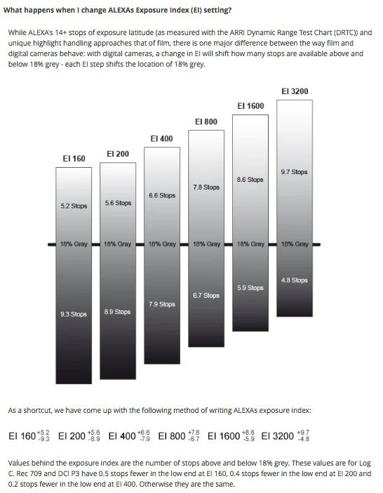 This has been a major focus of my studies lately. How do we use a stock or sensor’s dynamic range as a creative tool instead of a technical choice? Dynamic range is a sliding scale available to our disposal. It is certainly not just a technical sensor spec. Setting the EI to 800 on the Alexa sensor ensures that all of our information is evenly distributed between our shadows and highlights. There are realistically only 5 usable stops on each end, 6 if using the new ES modes on the 35. Arri's tech specs say 14+ stops, but in real-world environmental tests, I have found something closer to 10 stops while preserving image quality.